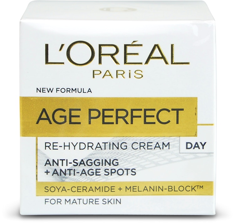 L’Oreal Paris Age Perfect Re-Hydrating Day Cream, a source of intense hydration for mature and menopausal skin. The luxurious moisturiser, enriched with Soya Peptides and UV filters, helps to firm facial contours to fight against skin sagging and to reduce the appearance of age spots. Skin feels hydrated, smoother and more comfortable.